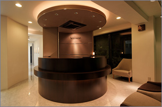 入口を入ると右側に弧を描いた優しいフォルムのカウンターがあります。受付で丁寧に対応いたします。